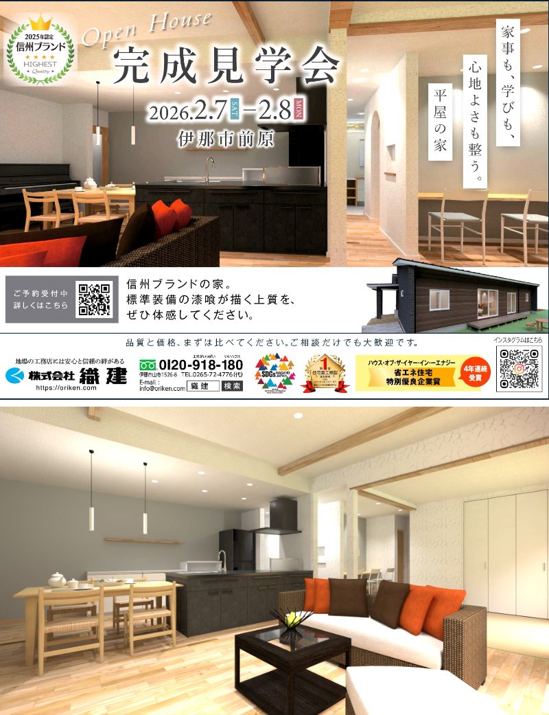 2月7日・8日:織建:完成見学会(予約制)